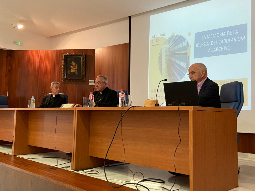 Por último, una vez finalizada esta primer parte, nos hemos trasladado a las 11:45hrs  hasta el Auditorio San Juan Pablo II donde hemos escuchado la conferencia titulada “La memoria de la Iglesia: Del Tabularium al Archivo” a cargo de Manuel Romero Tallafigo, Catedrático de Archivística en la Universidad de Sevilla