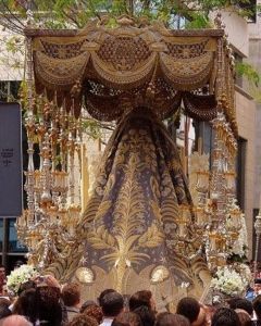 Manto y palio de Nuestra Señora de los Ángeles, diseñados por el portuense Juan Miguel Sánchez.