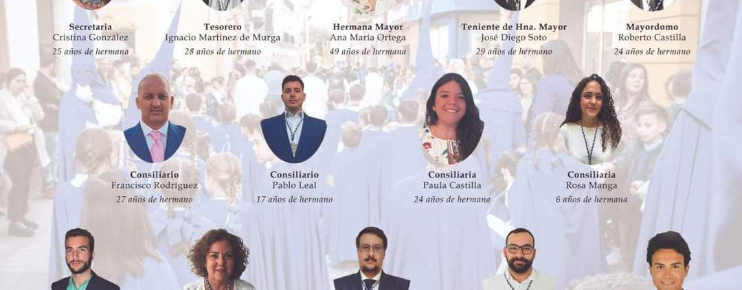 Hemos formado una Junta de Gobierno heterogénea, con miembros que tienen amplia experiencia en la gestión de la Hermandad, pues han estado trabajando por ella día a día en los últimos años; así como con algunas caras nuevas que vienen con mucha ilusión y ganas de sumar. Pero todos tenemos en común lo más importante: el amor por nuestra Hermandad enmarcado en un auténtico espíritu cofrade y cristiano, que nos impulsa a trabajar en ella para cumplir nuestra misión de anunciar el Evangelio y servir a la Iglesia.