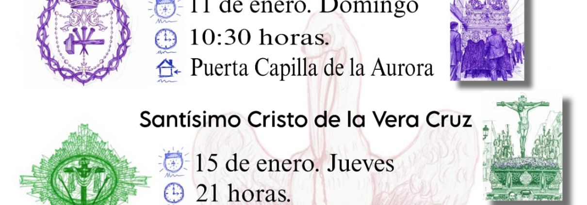 - Santísimo Cristo de la Vera Cruz: La cita será el jueves 15 de enero a las 21:00 horas. El lugar de reunión será la Casa de Hermandad, situada en la calle La Rosa nº 29A.