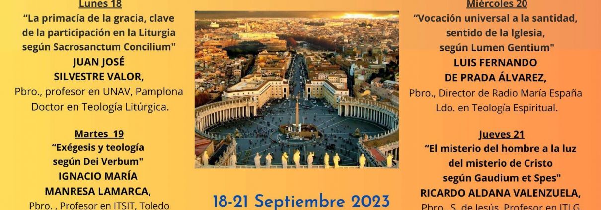 - Lunes 18 septiembre: “La primacía de la gracia, clave de la participación en la Liturgia según Sacrosanctum Concilium”, por D. Juan José Silvestre Valor, Pbro. Profesor en UNAV, Pamplona. Doctor en Teología Litúrgica.
